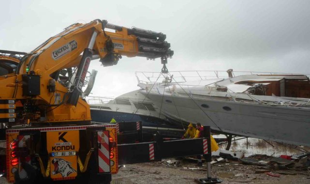 Felaketin ardından bugün alana vinç ve kepçe ekipleri sevk edildi. Aksu Belediyesi'nin düzenleme yaptığı alana, onarımı mümkün olan tekneler taşınmaya başlandı. Ekipler ve tekne sahipleri, uzun süre teknelerin römorklardan ayrılması için yoğun çaba gösterdi. Römorklardan ayrılan tekneler, vinç ve kepçe yardımıyla güvenli alana alınarak onarım sürecine hazırlandı.
