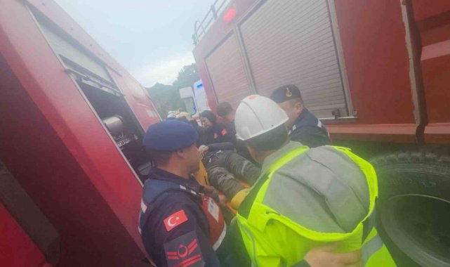 Sıkışan sürücüyü itfaiye kurtardı