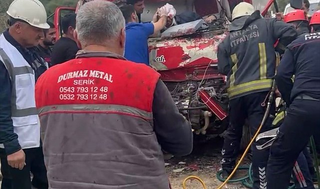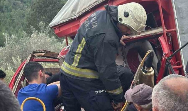 Antalya'da iki kamyon çarpıştı, sıkışan sürücüyü itfaiye kurtardı