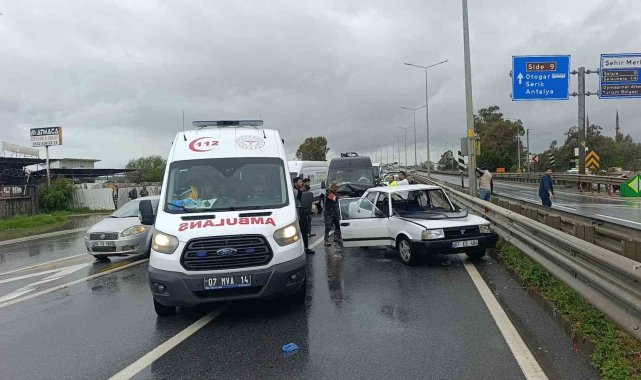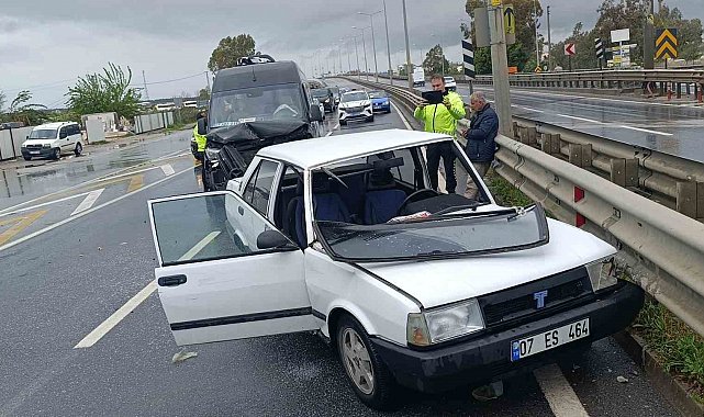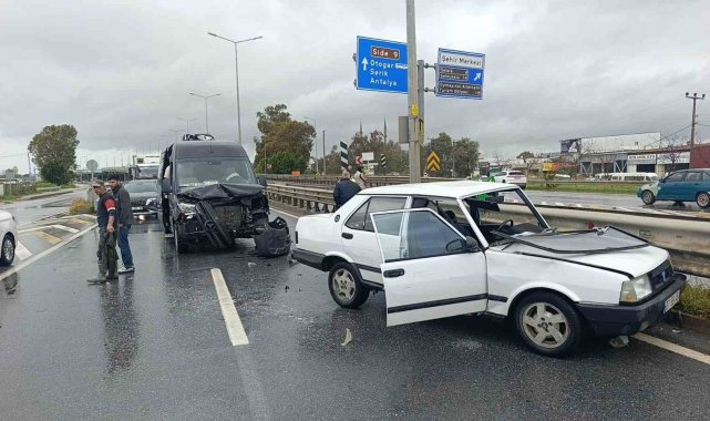 Kaza, Antalya'nın Manavgat ilçesi D-400 Karayolu Sanayi Köprülü Kavşağında meydana geldi. Edinilen bilgilere göre Antalya istikametinden Alanya yönüne seyir halinde olan Mutlu Y. idaresindeki 07 BMT 115 plakalı Mercedes marka tur minibüsü, Manavgat Çevreyolu Sanayi Köprülü Kavşağı çıkışında aniden önüne çıkan Mehmet Ali T. yönetimindeki 07 ES 464 plakalı Tofaş marka otomobille çarpıştı. Çarpmanın etkisiyle savrulan otomobil refüjdeki bariyerlere çarparken, araçtan yola düşen sürücü Mehmet Ali T. yaralandı. İhbar üzerine olay yerine gelen 112 Acil Sağlık ekipleri tarafından ilk müdahalesi yapılan yaralı sürücü, ambulansla Manavgat Devlet Hastanesi'ne kaldırılırken, kaza anı güvenlik kamerasına saniye saniye yansıdı.