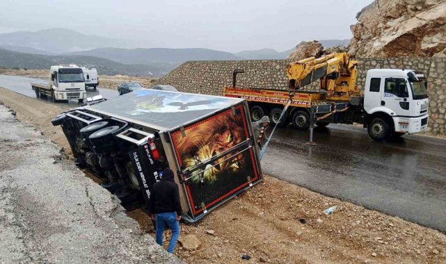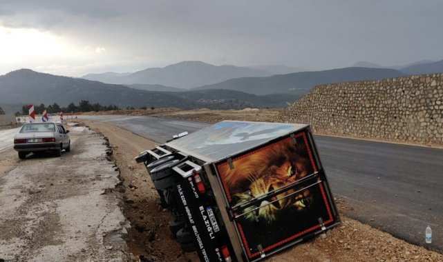 Antalya'da kamyon devrildi, sürücü yaralandı