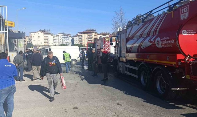 Antalya'da kaportacıya bırakılan araçta yangın çıktı