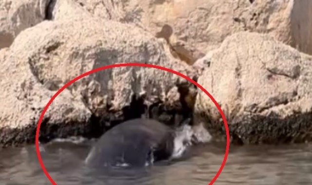 Antalya'da kayalıklar arasına giren yavru balina kurtarıldı