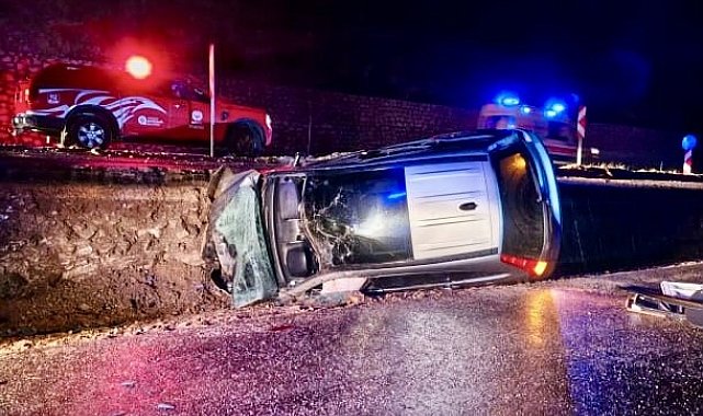 Antalya'da kontrolden çıkan otomobil yan yattı: 3 yaralı