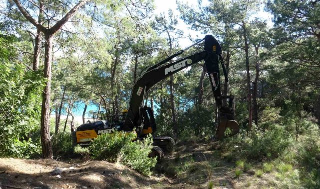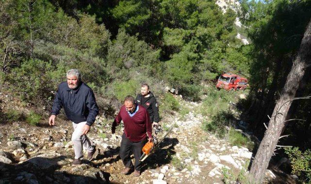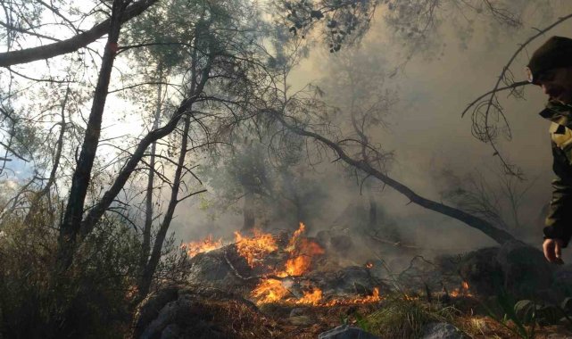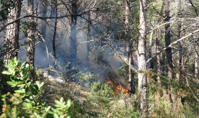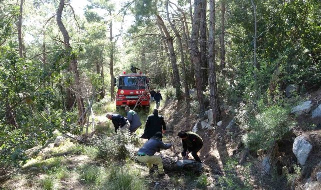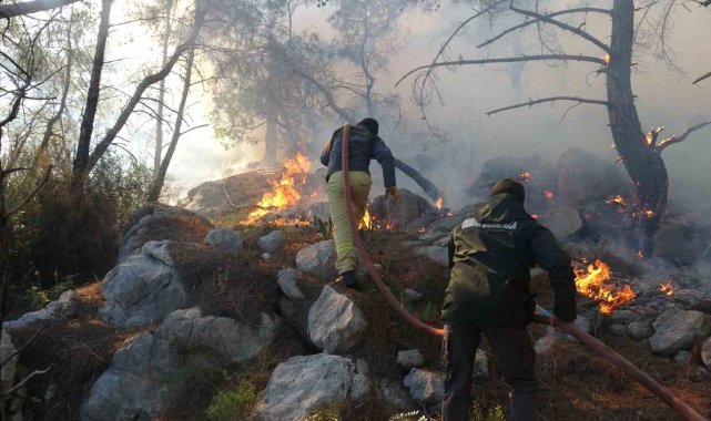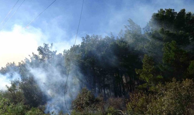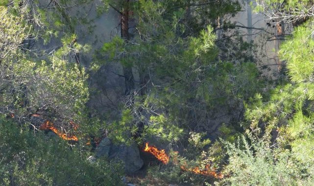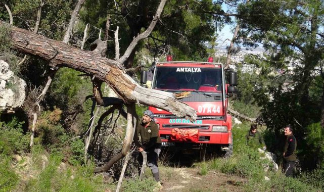 Antalya'da yüksek gerilim hattındaki tellerin kopması nedeniyle orman yangını çıktı. Ekipler patika yola devrilen ağaçlar nedeniyle ilerlemekte zorlandı.
