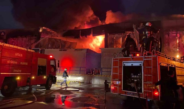 Antalya'da market deposu alev alev yandı, temel gıda alanı küle döndü