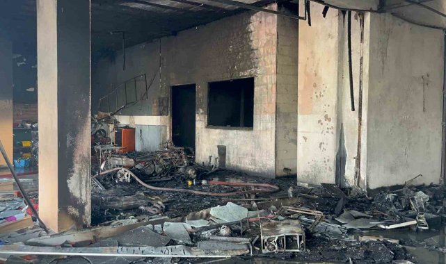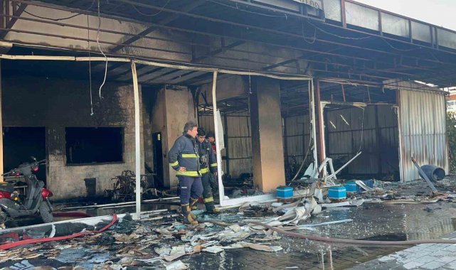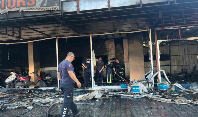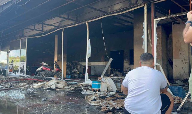 Antalya'da motosiklet servisinde çıkan yangında 10'un üzerinde motosiklet küle döndü