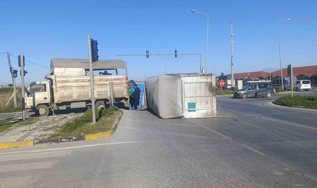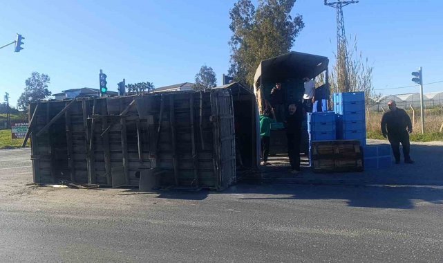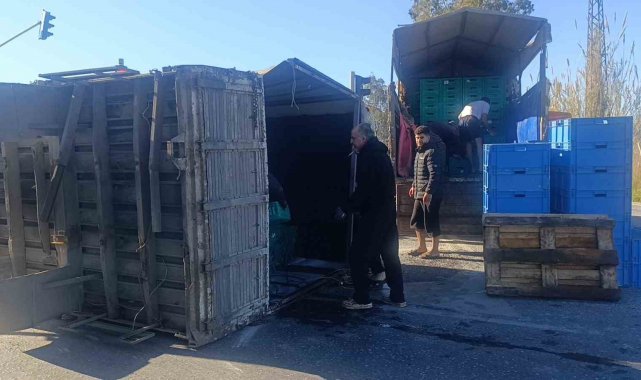 Antalya'nın Manavgat ilçesinde muz yüklü kamyonun kasası kavşakta yerinden sökülerek yola savruldu. Şans eseri yaralananın olmadığı olayda, tonlarca muz başka araçlara nakledildi.
