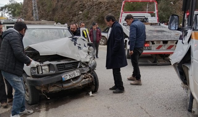 Kaza, saat 16.30 sıralarında Gazipaşa'nın Karalar Mahallesi Ekizli mevkiinde meydana geldi. Edinilen bilgiye göre, okul çıkış saatinde Hüseyinli İlkokulu ve Ortaokulu'ndan öğrenci alan V.Ş. idaresindeki 07 C 50028 plakalı öğrenci servisi, karşı yönden gelen sürücüsü öğrenilemeyen 07 NYB 79 plakalı kamyonetle kafa kafaya çarpıştı. Kazada, S.Ş. (9), K.S. (9), M.B.T. (14), M.Ş. (11), H.S. (10), E.Ş. (13), İ.Ş. (8), K.D. (11), D.Ş. (8), E.D. (11), S.E.C. (12), Z.Ş. (8), A.Ş. (11), G.D. (8), V.Ş. (8), B.D. (10), E.Ş. (14), N.D. (14), A.D. (14), A.D.(8), B.S.S. (9) isimli öğrencilerle, öğretmen S.T.(45) ve servis şoförü V.Ş. ile kamyonette bulunan 1 yolcu hafif şekilde yaralandı. Kazayı görenlerin ihbarı üzerine olay yerine sağlık ve jandarma ekipleri sevk edildi. Yaralılar, sağlık ekipleri tarafından Gazipaşa Devlet Hastanesine kaldırılarak tedavi altına alındı. Yaralıların sağlık durumlarının iyi olduğu kaydedildi. Jandarma ekipleri kazayla ilgili inceleme başlattı.