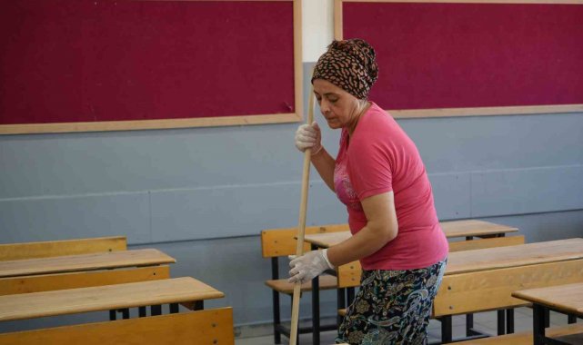 Okulda destek hizmetlerinde görev yapan ve aynı zamanda veli olan Aysun Aydın ise yaz boyunca okulda çalıştığını belirterek şunları söyledi: