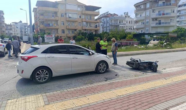 Antalya'da otomobille çarpışan motosiklet sürücüsü havada taklalar attı