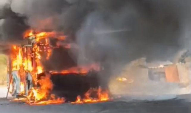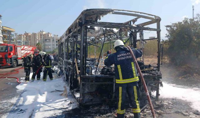 Antalya'da park halindeki özel halk otobüsü alev alev yanıp adeta küle döndü. Yangında can kaybı ve yaralanma yaşanmazken, otobüsünün yakınında bulunan bir otomobil de zarar gördü.