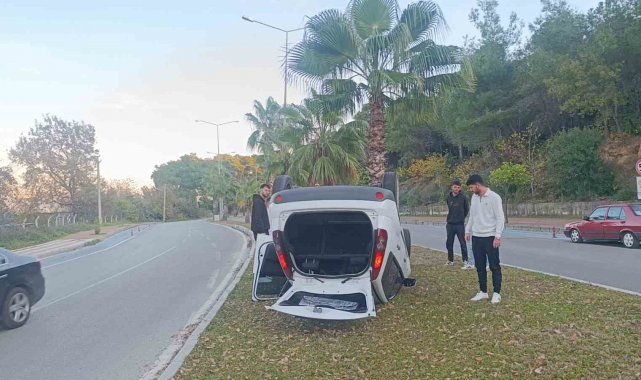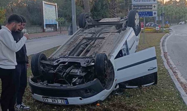 Antalya'nın Manavgat ilçesinde kavşağa yaklaştığı sırada refüj bordürüne çarparak ters dönen otomobil sürücüsü, kazayı hafif yaralı olarak atlatırken tedbir amaçlı hastaneye kaldırıldı.