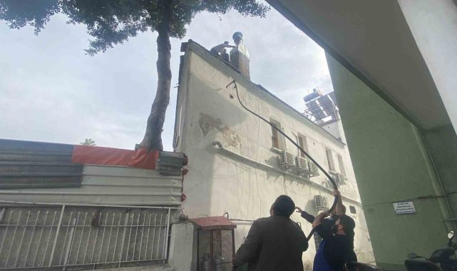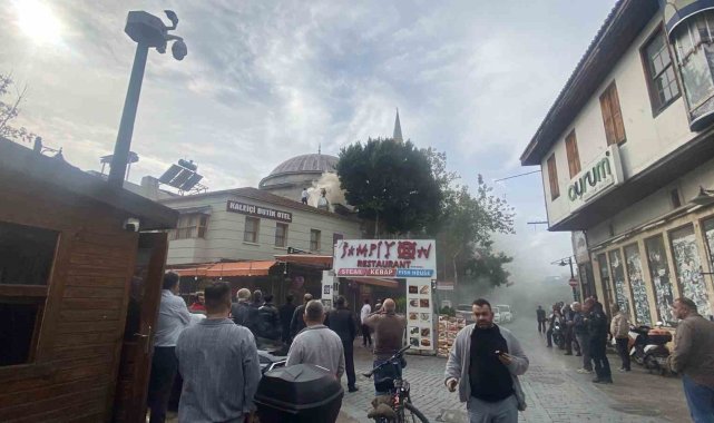 Antalya'da bir restoranın bacasında çıkan yangın ortalığı dumana boğdu. Restoranın bitişiğindeki camiye erken gelen cemaatten bazı vatandaşlar ise dumandan dolayı içeri girmek için beklemek zorunda kaldı, yangının bitimiyle birlikte camiye giriş yaptı.