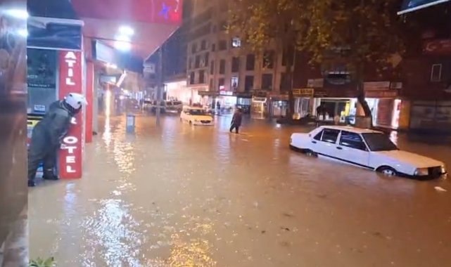 Dün akşam saatlerinde başlayan yağmur, kısa sürede şiddetini artırarak sağanağa dönüştü. Tıkanan rögarlar nedeniyle cadde ve sokaklar adeta göle dönerken, iş yerlerini su bastı. Gece boyunca araçlar suyla kaplı yollardan güçlükle ilerlerken, oluşan dalgalar iş yerlerine giren suyun daha da artmasına neden oldu.