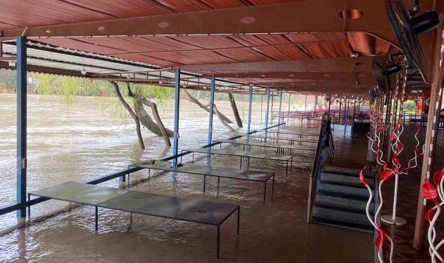 Antalya'nın Serik ilçesinde etkili olan sağanak yağış, Köprüçayı Irmağı'nın debisinin yükselmesine neden olurken, ilçe genelinde taşkınlar yaşandı. Irmak kenarındaki restoranların bazı bölümleri sular altında kalırken, tarım alanları zarar gördü bazı evlerde ve hayvan barınaklarında maddi kayıp oluştu.