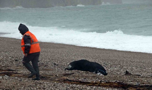 Dev dalgaların oluştuğu dünyaca ünlü Konyaaltı Sahili'nde ise kıyıya telef olmuş dana vurdu. Sabah erken saatlerde vurduğu değerlendirilen dana için belediye ekiplerine bilgi verildi.