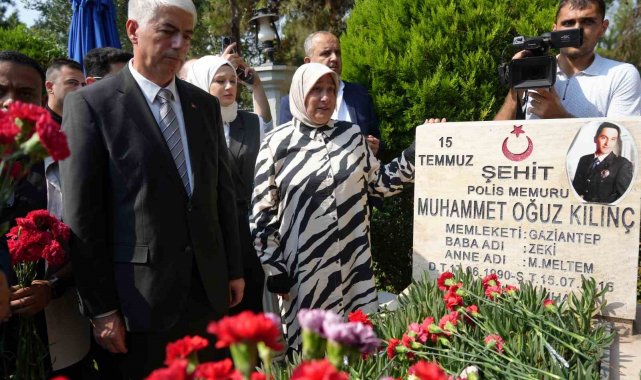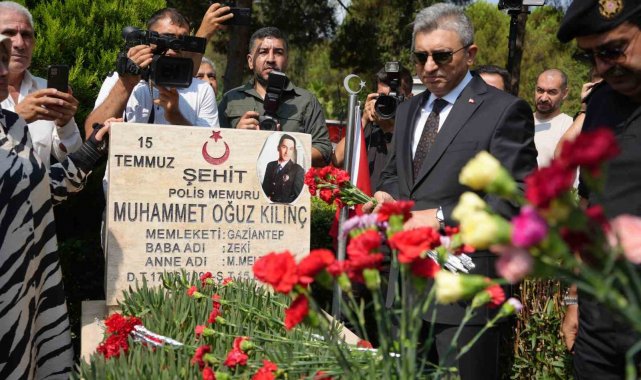 Tören kapsamında ilk ziyaret, FETÖ'nün darbe girişimi sırasında Ankara Emniyet Müdürlüğü'nde şehit düşen Antalyalı polis memuru Muhammet Oğuz Kılınç'ın mezarına yapıldı. Baba Zeki Kılınç, "Çocuğumuzla onur ve gurur duyuyoruz. İnşallah bir daha 15 Temmuzlar yaşanmayacak. Bu milletin bayrağı kıyamete kadar dalgalanacak" dedi. Anne Meliha Meltem Kılınç ise "Bugünün hem onurunu yaşıyorum, hem gururunu, hem de üzüntüsünü hem hüznünü yaşıyorum. Bir anne olarak dayanmak çok zor. Fakat şehadet makamının var olması beni birazcık teselli ediyor. Onun en güzel yerde olduğunu biliyorum. Allah FETÖ hainlerinin hepsini kahru perişan etsin. Hala FETÖ'ye inananlar varsa artık akıllansınlar, kendilerini toparlasınlar. Antalya'dan şehit olan Yasin Naci Ağaroğlu ve Muhammed Oğuz Kılıçlarımız hep yaşasınlar. Gönüllerimiz de yaşayacak onlar. Onları hiç unutmayacağız" diye konuştu.