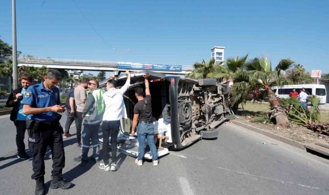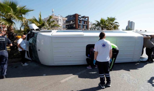 Antalya'da sürücüsünün kontrolünü kaybettiği servis minibüsü refüje çarparak devrildi. Kazada araç içerisinde sıkışan sürücü itfaiye ve sağlık ekiplerini tarafından çıkartılarak hastaneye kaldırıldı.