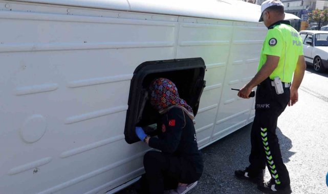 Antalya'da servis minibüsü devrildi, sıkışan sürücüyü ekipler çıkardı