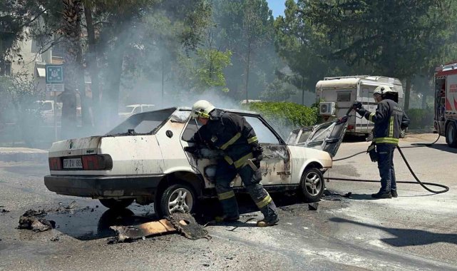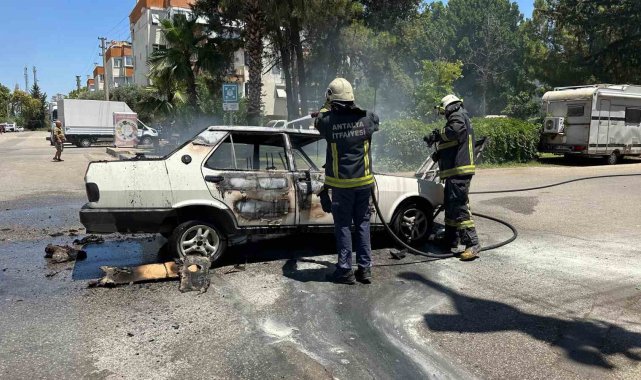 Sıcaklığın 40 derece hissedildiği Antalya'da Tofaş otomobilde çıkan yangın otomobili kül etti.