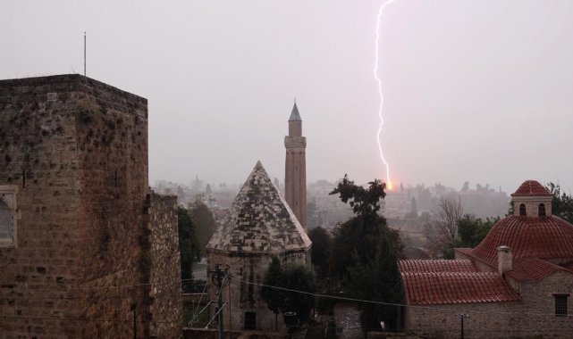 Antalya'da öğleye doğru başlayan sağanak yağış, kısa sürede etkisini artırarak doluya dönüştü. Yıldırımların eşlik ettiği yağış, kentte yaşamı olumsuz etkiledi. Kent merkezinde, özellikle Kaleiçi ve çevresinde art arda çakan yıldırımlar gökyüzünü aydınlatırken, bazı anlar kameralara da yansıdı.