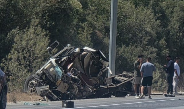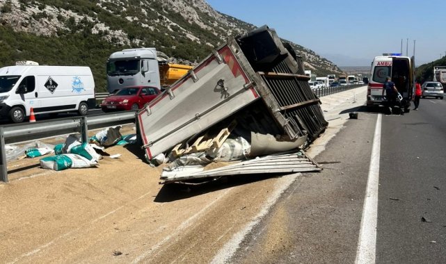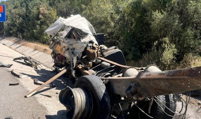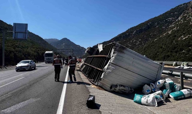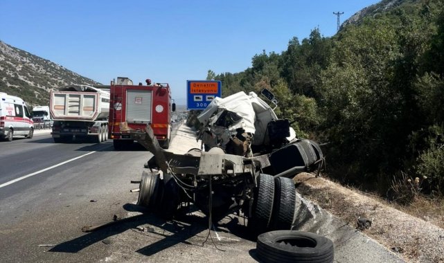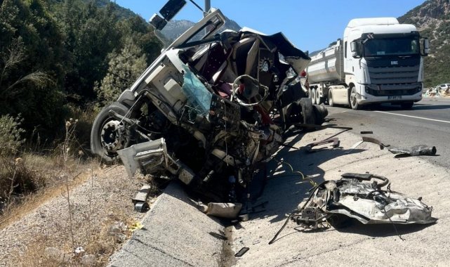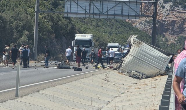 Antalya'da direksiyon hakimiyetini kaybetmesi sonucu meydana gelen kazada, yol kenarına devrilen tırın genç sürücüsü hayatını kaybetti.