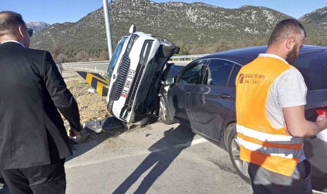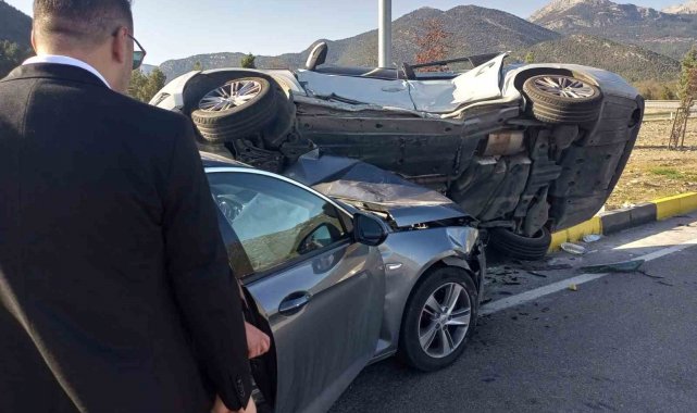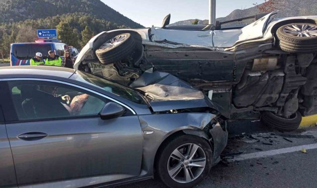 Antalya-Konya karayolunda 2 otomobilin çarpışması sonucu meydana gelen kazada 2 kişi yaralandı.