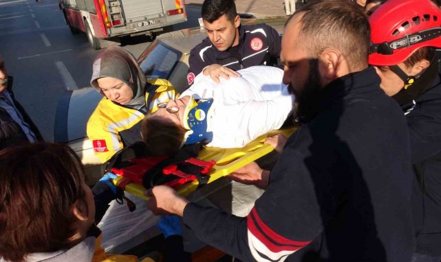 Araç içerisinde sıkışan yaralıyı itfaiye ekipleri çıkardı