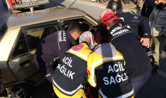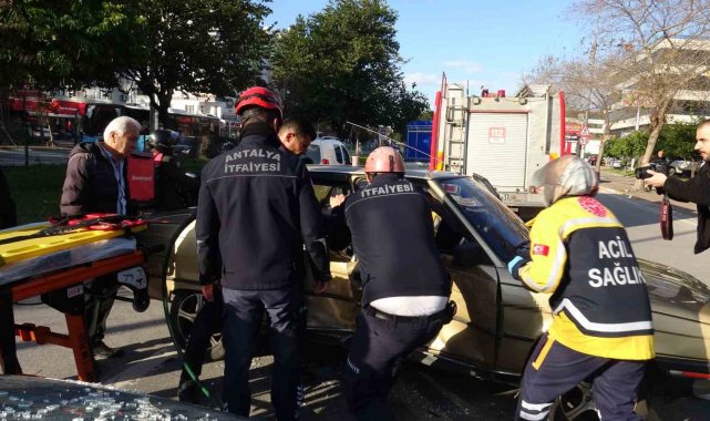 Antalya'da meydana gelen trafik kazasında araçta sıkışan bir kişi yaralandı. Yaşlı kadın itfaiye ekipleri tarafından bulunduğu yerden çıkartılarak hastaneye kaldırıldı.