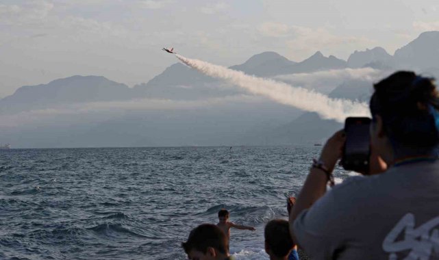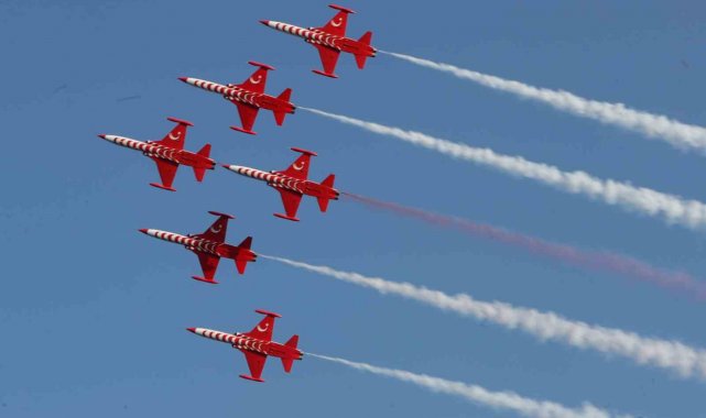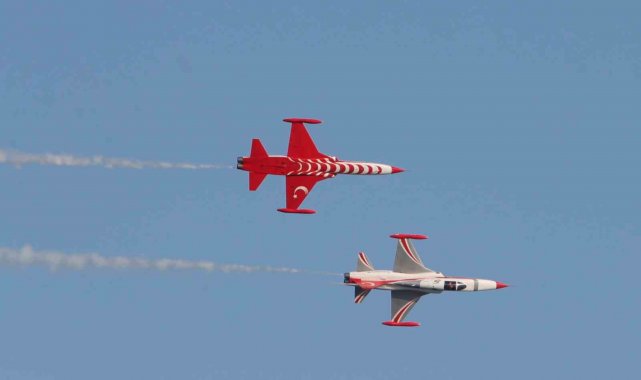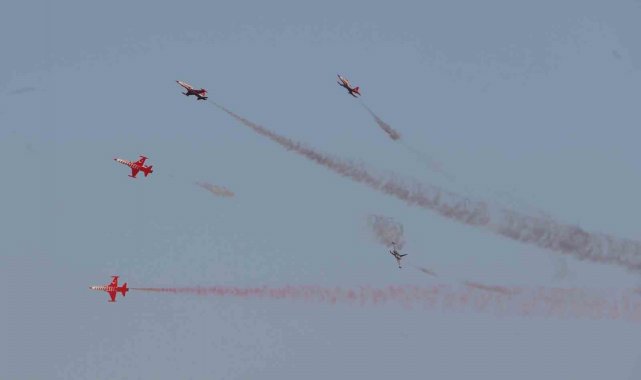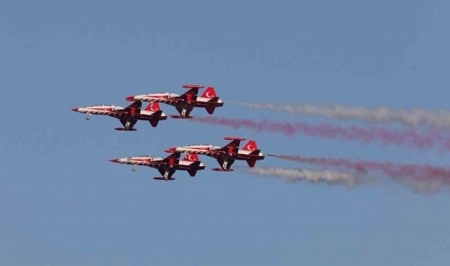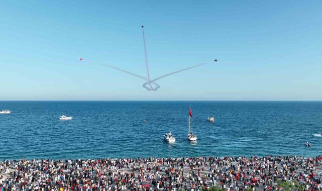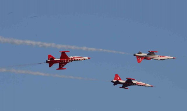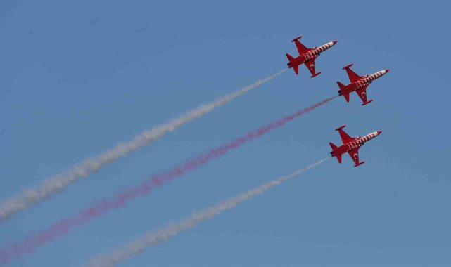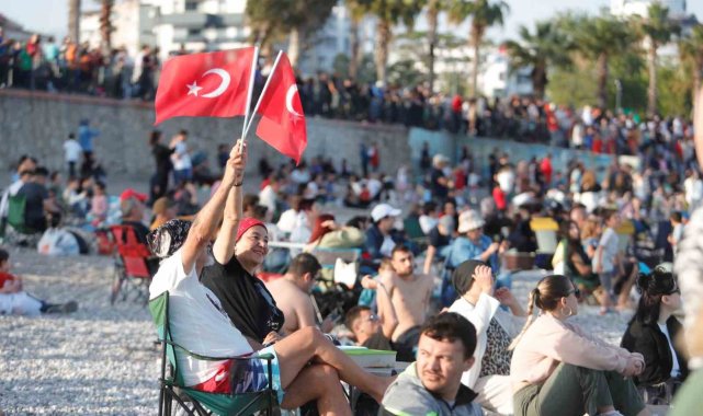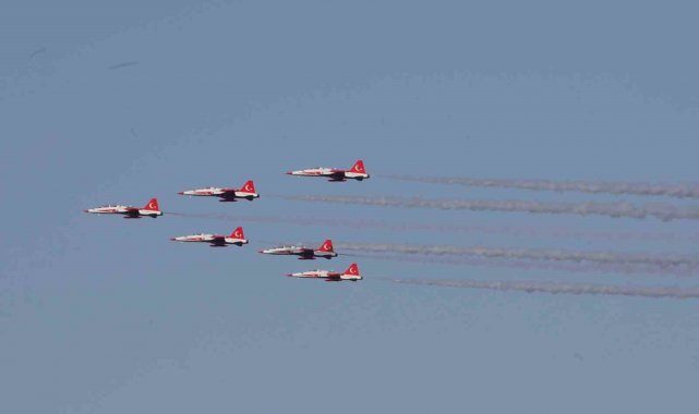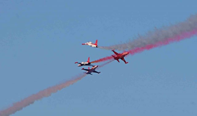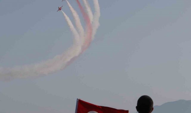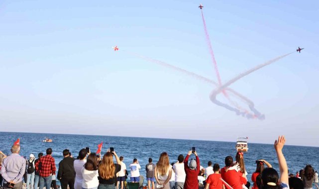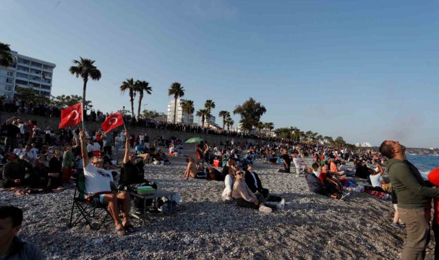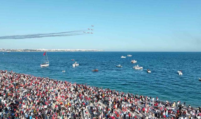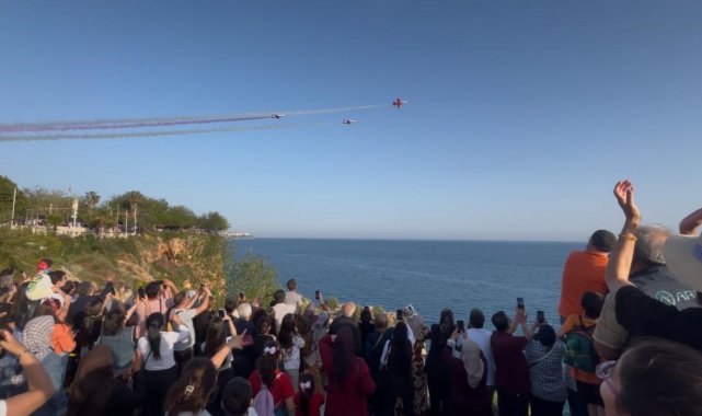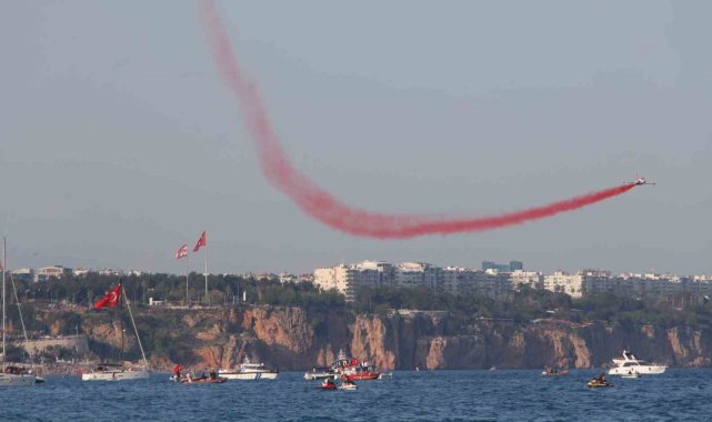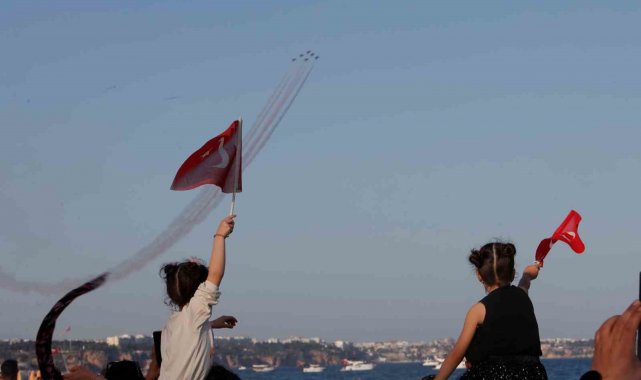 Türk Yıldızları'nın usta pilotlarının uçaklarla gerçekleştirdiği heyecan dolu gösteri, akrobasi timinde yer alan bir pilotun uçak içerisinden Antalyalıların bayramını kutlamasıyla başladı. Pilotun uçak içinden sesini duyan Antalyalılar bu kutlamaya alkışlarıyla karşılık verdi. Usta pilotların uçaklarla gerçekleştirdiği ters dönüşler ve manevralar ilgiyle izlendi. Türk Yıldızları, gökyüzüne uçaktan çıkan kırmızı dumanla kalp çizdi. Antalyalılar uçakların birbirlerine yakın mesafede gerçekleştirdiği hareketler karşısında nefeslerini tuttu. Dakikalarca gözlerini gökyüzünden ayırmayan vatandaşlar, bu anları cep telefonlarıyla kaydetti. Gösteri sonunda Antalya Valisi Hulusi Şahin ve Antalya Büyükşehir Belediye Başkanı Muhittin Böcek, ekibe plaket takdim etti.