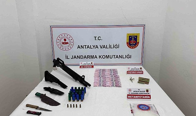 Antalya'da jandarma ekiplerince düzenlenen operasyonda yüklü miktarda uyuşturucu madde ile silah ve mühimmat ele geçirilirken, 3 şüpheli gözaltına alındı.