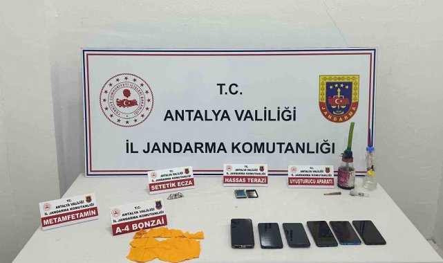 İl Jandarma Komutanlığınca yürütülen çalışmalarda Kepez ve Alanya ilçesinde 4 şüphelinin evinde Antalya İl Jandarma Komutanlığı İstihbarat Şube Müdürlüğü, Narkotik Şube Müdürlüğü, Kepez ve Alanya İlçe Jandarma Komutanlığı ekipleri ile arama yapıldı. Aramalarda 3 bin kullanımlık kannabinoid uyuşturucu madde, 316 gram metamfetamin, bin 768 gram kubar esrar, 21 adet sentetik ecza hap, 3 adet hassas terazi, 38 kök kenevir, 1 adet av tüfeği, 2 adet tabanca, 2 adet şarjör, 53 adet tabanca fişeği, 3 adet cep telefonu ve suçtan elde edildiği değerlendirilen 71 bin lira para ele geçirildi.