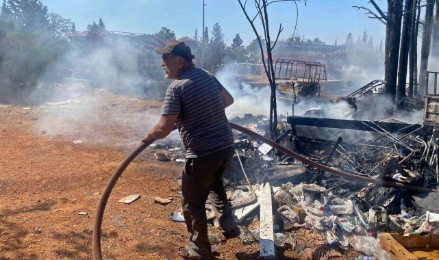Antalya'da çıkan yangına hurdacıya ait ev, kamyonet ve motosikleti küle döndü. Evinin küle dönüşünü gözleri dolarak izleyen hurdacı yangının kundaklama sonucu çıktığını ileri sürerken, yan taraftaki komşusu yaşlı kadın ise alevlerin evine sıçrayacağı korkusuyla sinir krizi geçirdi. Hurdacıyı çok kez uyardığını belirten yaşlı kadın, "Bırakın beni yangının içine gideceğim. Öyle de yandım böyle de yandım ben" dedi.