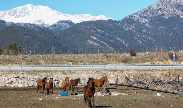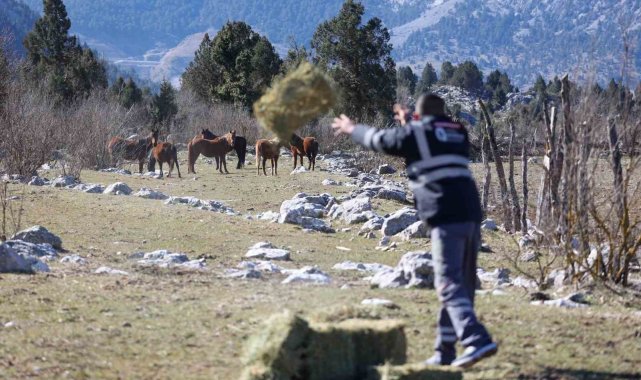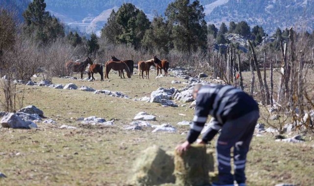 Antalya Büyükşehir Belediyesi, son yılların en soğuk günlerinin yaşandığı bugünlerde Antalya'nın Akseki ilçesine bağlı Eynif Merası'nda yaşamlarını sürdüren yılkı atları için harekete geçti. Büyükşehir ekipleri, 90 bin dönümlük merada sürü halinde yaşayan yılkı atlarının soğuk kış günlerinde beslenmelerini sağlamak amacıyla doğaya yiyecek bırakıldı. Eynif Merası'nın farklı noktalarına bırakılan saman ve yonca balyası ile yılkı atları beslenebilecek.