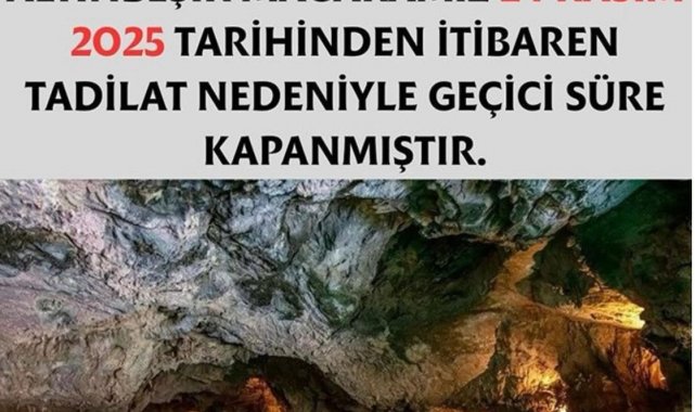 Tadilatın ne kadar süreceği henüz netlik kazanmazken, çalışmalar tamamlandığında mağaranın yeniden ziyaretçilere açılacağı ifade edildi.
