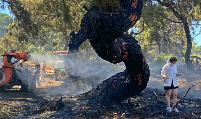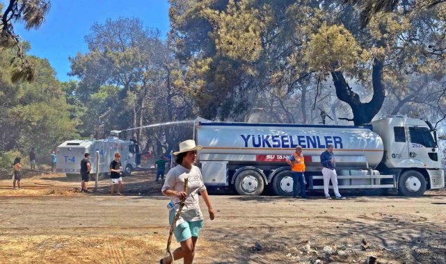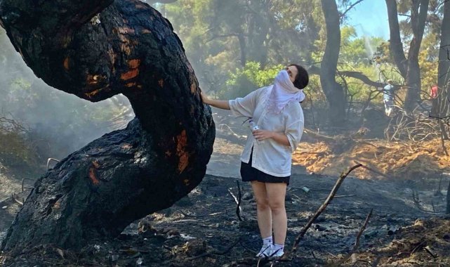 Her gün koşu yaptığı yolda ağaçların yandığını görüp duygu dolu anlar yaşayan bir bölge sakini kadın da, "Burası normalde benim koşu yolumdu. 15 senedir ilk defa buradaki ağaçlar yanıyor. Bu kadar ağacın yanması duygulandırıyor beni. Can kaybı yok diyorlar ama bunlarda can sonuçta" dedi.