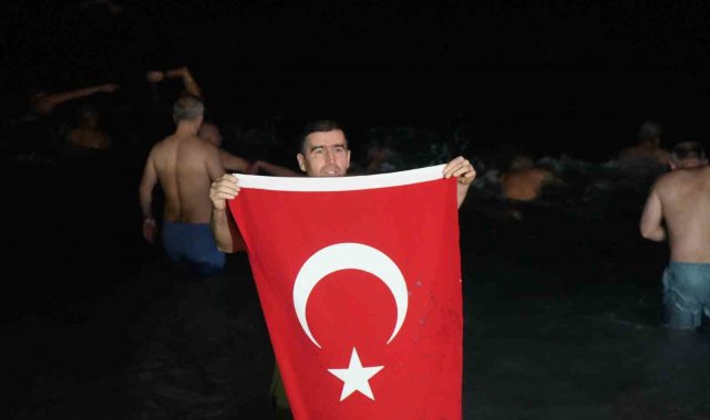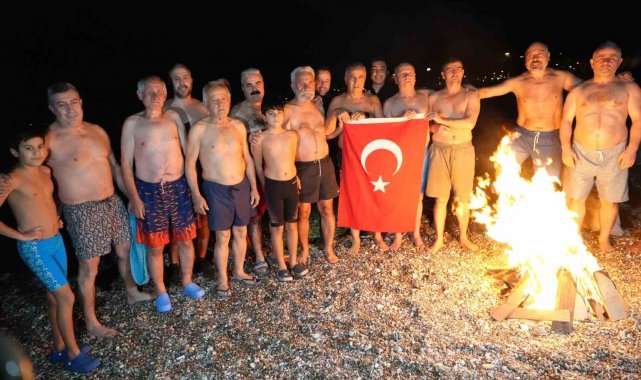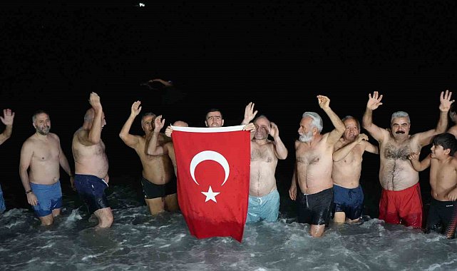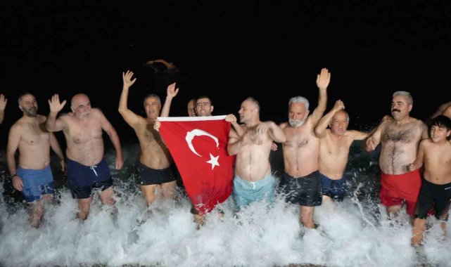 Gece saatlerinde Konyaaltı Sahili'nde bir araya gelen yaklaşık 30 kişilik grup, ellerinde Türk bayraklarıyla geri sayım yaparak yeni yılı denizde karşıladı. Saatler 00.00'ı gösterdiğinde ise grup üyeleri hep birlikte denize girerek 2026 yılının ilk dakikalarını Akdeniz'in serin sularında geçirdi.