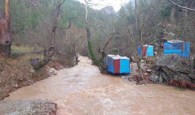 Antalya Gündoğmuş'ta dereler taştı, piknik alanları su altında kaldı