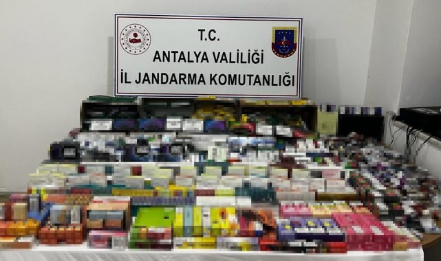 Antalya İl Jandarma ve Manavgat İlçe Jandarma Komutanlığı ekipleri tarafından gerçekleştirilen operasyonda; kaçak sigara, elektronik sigara, elektronik sigara kiti, tütün ve elektronik sigara likiti ele geçirildi.