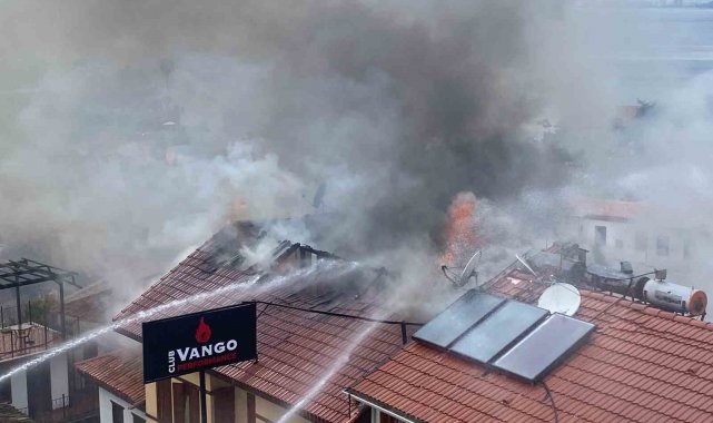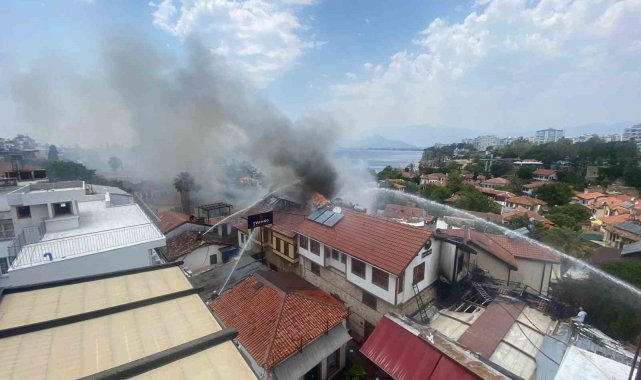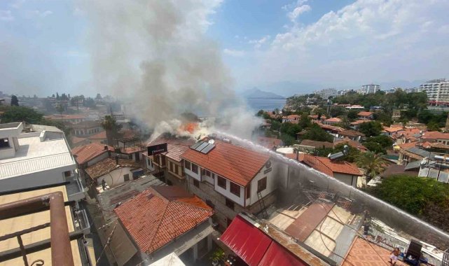 Antalya'nın tarihi Kaleiçi semtinde 2 katlı bir otelde başlayan ve 2 iş yerine sıçrayan yangını kontrol altına alması çalışmaları devam ediyor.
