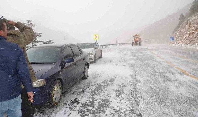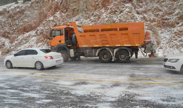 Antalya-Konya kara yolunda kar yağışı başladı. Ekipler ulaşımın aksamaması için çalışmalarını aralıksız sürdürüyor.