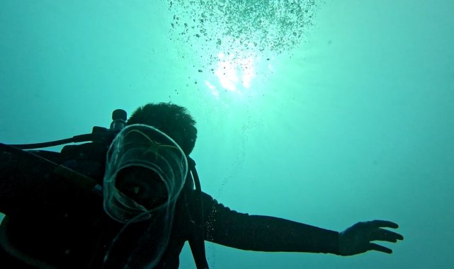 Bahara girerken doğada olduğu gibi denizde de değişimler yaşandığını kaydeden Prof. Dr. Mehmet Gökoğlu, "Poyraz yüzey ve kıyı suyunu açığa doğru götürdü. Açığın berrak suyu da alttan kıyıya doğru sürüklendiği için görüş çok iyi" dedi.
