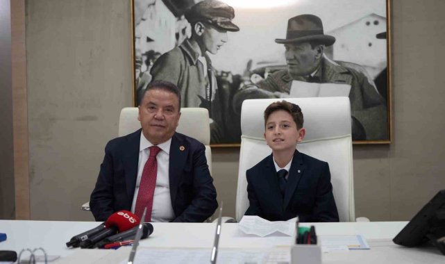 Antalya Büyükşehir Belediye Başkanı Muhittin Böcek, 23 Nisan'da koltuğunu 4. sınıf öğrencisi Deniz Erdemir'e devretti. Barış ve kardeşlik mesajı veren çocuk başkan Erdemir, "Birlikte oynayan, birlikte gülen, birbirinin farklılıklarına saygı duyan çocuklar, gelecekte de barış dolu bir dünya kurar" dedi.