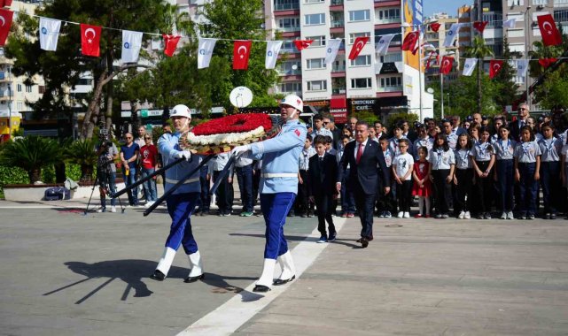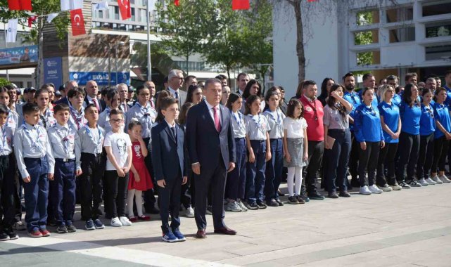 Antalya Büyükşehir Belediyesi, 23 Nisan Ulusal Egemenlik ve Çocuk Bayramı'nı belediye önünde düzenlediği törenle kutladı. Belediye orkestrasının marşlarla eşlik ettiği etkinlikte, Başkan Muhittin Böcek ve Cengiz Topel İlkokulu 4. sınıf öğrencisi Deniz Erdemir, Atatürk Anıtı'na çelenk sundu. Törene çok sayıda çocuk da katıldı. Saygı duruşu ve İstiklal Marşı'nın okunmasının ardından belediye binasına geçildi.