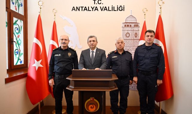 Toplantıya Antalya İl Emniyet Müdürü Sabit Akın Zaimoğlu, İl Jandarma Komutanı Ahmet Kavukcu ve Sahil Güvenlik Komutanı Tolga Coşkun da katıldı.