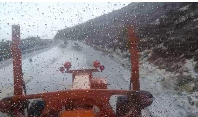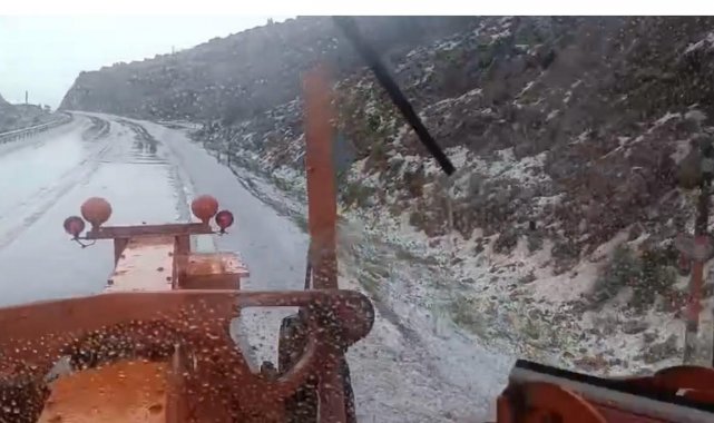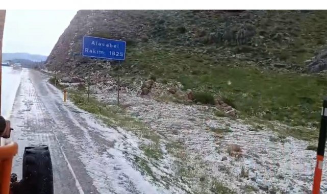Antalya'yı Konya'ya bağlayan Akseki-Seydişehir karayolunda dolu yağışı etkili oldu, Alacabel'de kar görüntülerini aratmayan manzara ortaya çıktı. Ekipler küreme çalışması yaptı.