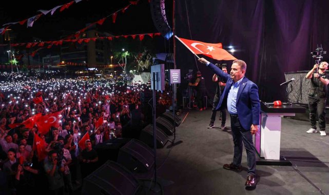 Başkan Böcek'in konuşmasının ardından CHP İl Başkanı Nail Kamacı, milletvekilleri, Cumhuriyet İçin Antalya El Ele Platformu Üyeleri, Atatürkçü Düşünce Derneği Antalya Şube Başkanı İbrahim Daş, Türk bayraklarıyla sahneye çıkarak Antalyalıları coşkuyla selamladı. Coşkulu gece Ceza konseri ile devam etti. Ceza, en güzel şarkılarını Antalyalılar ve gençler için seslendirdi.