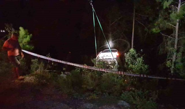 Antalya'nın Alanya ilçesinde şarampole yuvarlanmış ve ağaçların arasınd...