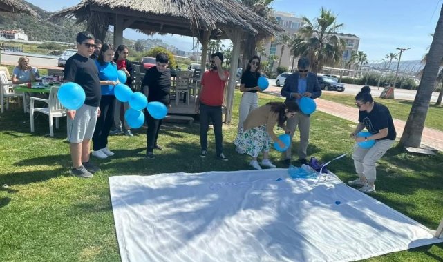 Etkinlikte özel öğrenciler ellerini maviye boyayarak zemine serilen örtü üzerine baskı yaptılar, ardından Müdür Gül ve Müdür Dal ile birlikte mavi balonları gökyüzüne uçurdular.
